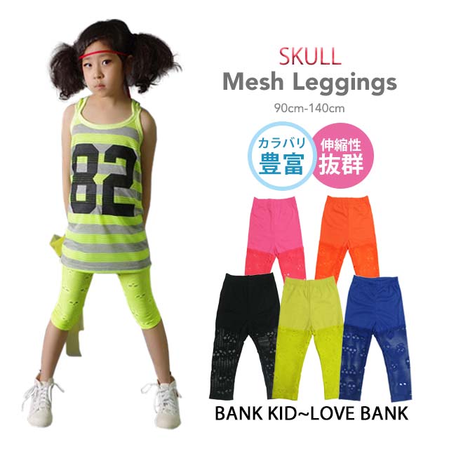 キッズ ダンス衣装 レギンス メッシュ 7分丈 スカル柄 Ppr 01 子供 子ども ダンス ヒップホップ スパッツ 夏用 可愛い ハーフ丈 5分丈 カラフル インナーパンツ ジュニア 黒 ピンク オレンジ 黄色 青 韓国子供服 のおすすめ キテミヨ Kitemiyo